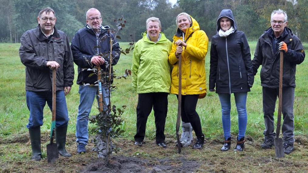 Mit Regenjacke, Gummistiefeln und Spaten ausgestattet, pflanzte die CDU-Kiebitzreihe zum Tag der Deutschen Einheit einige Buchen und beteiligt sich so an der bundesweiten Baumpflanzaktion.